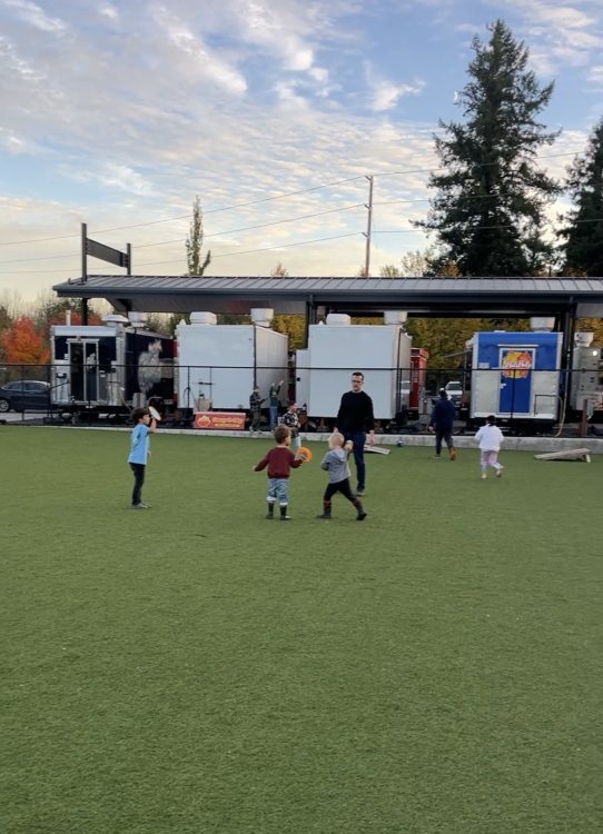Вова в этот день был в Бивертоне и работал ещё за компом. А Тимофею мы в день рождения обещали суши в ресторане. Вова не успевал из Бивертона, поэтому было решено, что сегодня заедем на Oak station. Там может каждый взять, что захочет в фудтраках. А ресторан через пару дней.