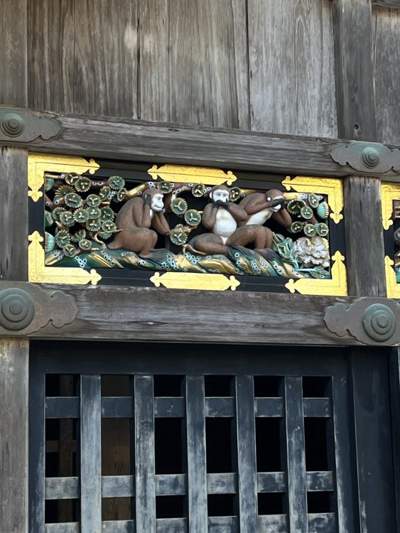 Храм не просто красив, но и очень насыщен символами. Например, знаменитая трёх обезьяны — «не вижу, не слышу, не говорю» — это часть декора на одном из зданий. Эти символы были важной частью философии Иэясу и его идеи о правлении без излишнего вмешательства в чужие дела.