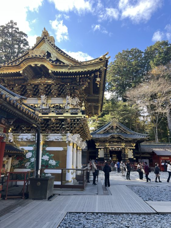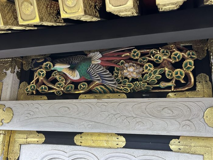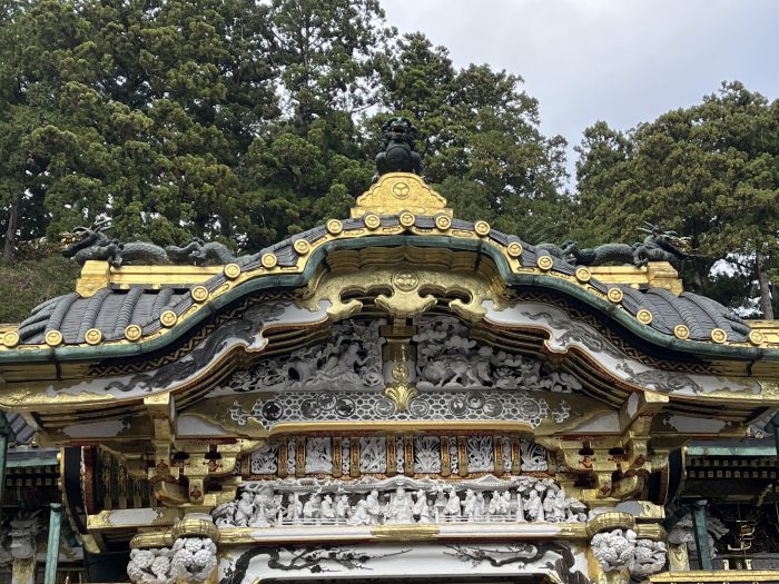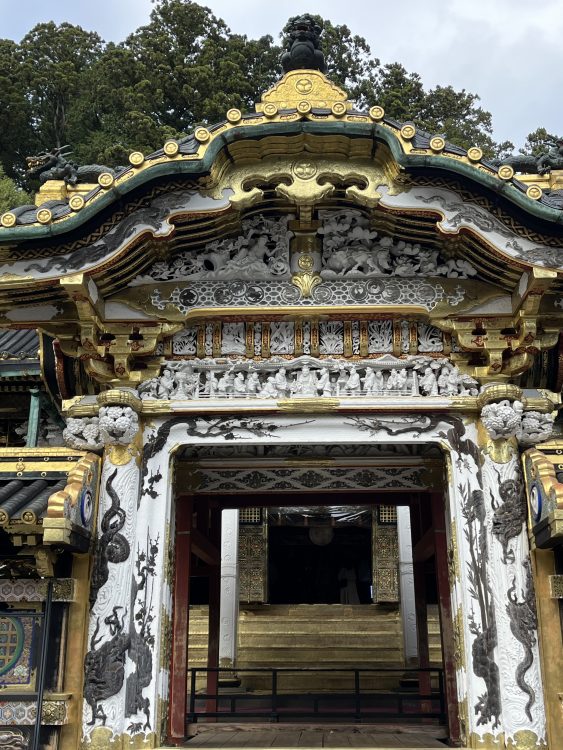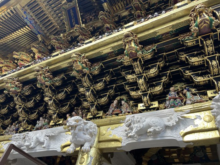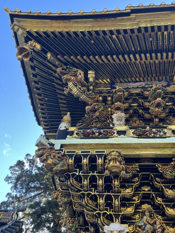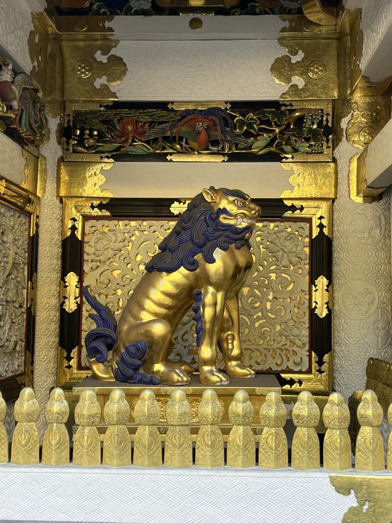 Это, пожалуй, одна из главных особенностей. Храм буквально “погружает” тебя в атмосферу барокко, но японского. Он не такой строгий, как многие другие японские храмы, а наоборот — яркий, пестрый и живой. Золотые детали, резьба по дереву, изображения мифологических существ — всё это сделано с невероятной тщательностью и мастерством.