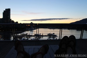 После поездки на Capilano Suspension Bridge мы решили еще заехать в Down Town полюбоваться на закат. Мы пошли посидеть на сидениях, которые поставлены на Canada Place. Я их фотографии уже выкладывала в другом посте. Мы там сели и любовались на закат.
